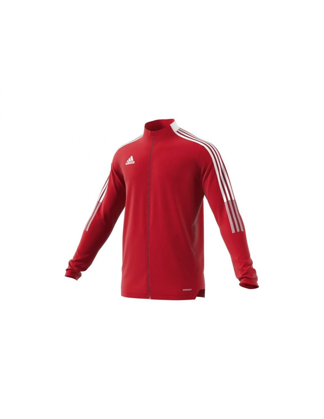 adidas-striper på skuldre og ermet.