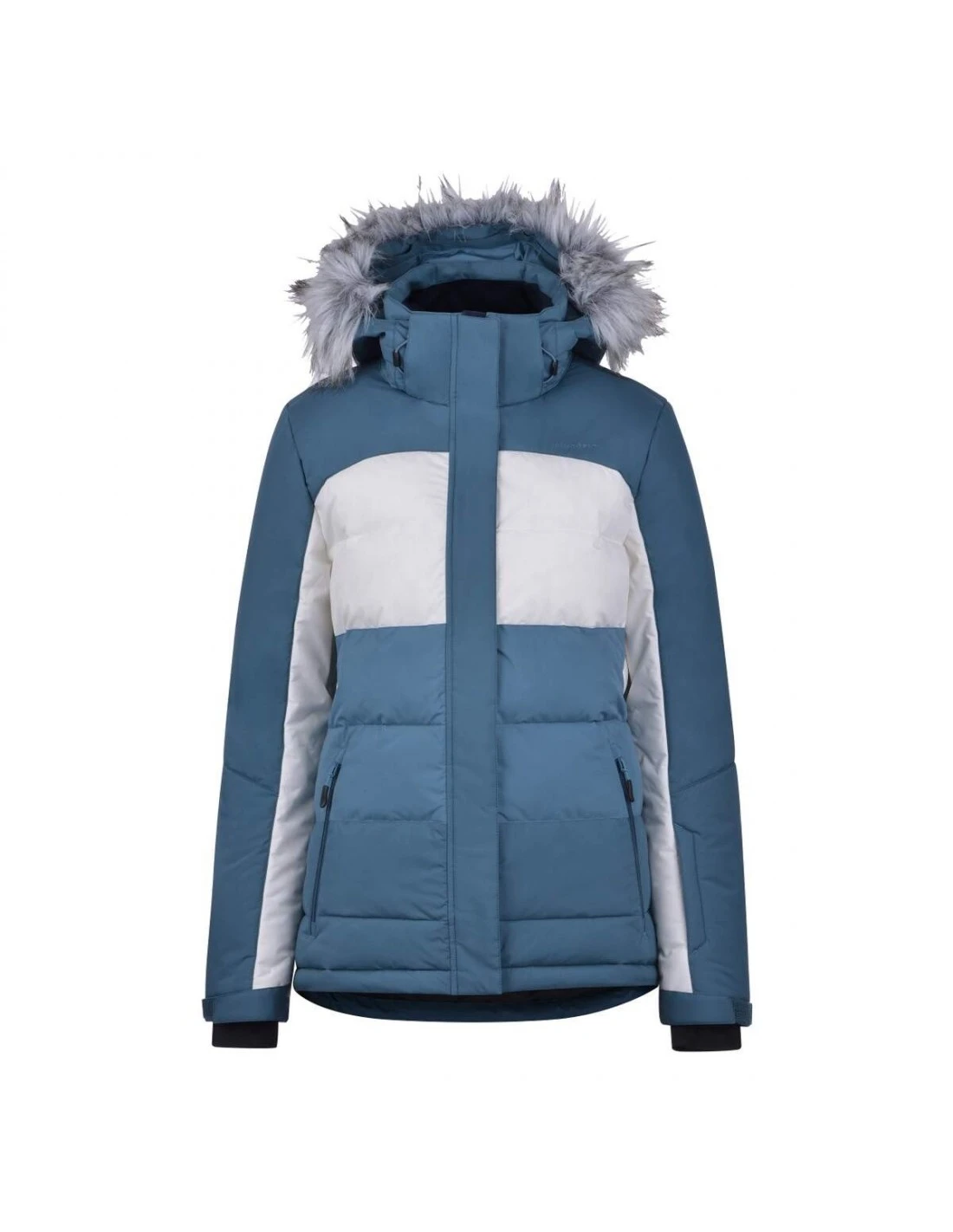 Jakken har stor avtagbar hette med pels, lomme for heiskort og avtagbart innvendig snøskjørt.