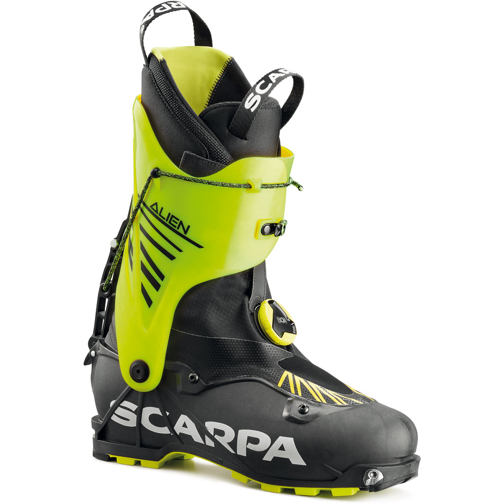 ALIEN CUFF: Mansjetten injiseres i Grilamid FG LFT®. Dette materialet er forsterket med lange glassfiber. Dette skaper produkter som har høyeste styrke- og stivhetsverdier med en prosentvis paritet sammenlignet med en kortfiber, egnet for lette bruksområder. Den lange fiberstrukturen gir 20% til 30% høyere stivhet. Alle lange fiberarmerte polyamider viser høyere hakkverdier for slagstyrke sammenlignet med normale forbindelser. Overlappende konstruksjon garanterer perfekt innpakning av skinnet som maksimerer overføringen av impulser til skiene. Sammen med Speed Lock Lite-systemet garanterer det presisjon og maksimal tilpasning.