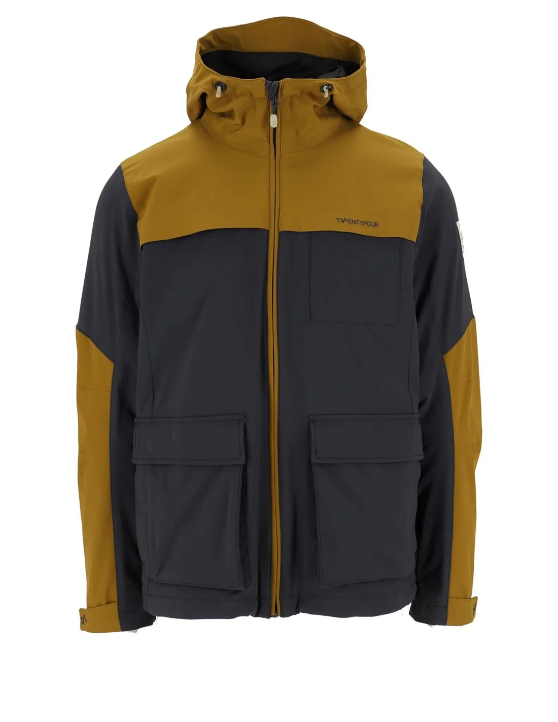 Stoff på hette, skuldre, bryst og deler av ermene er i 92% polyester og 8% spandex