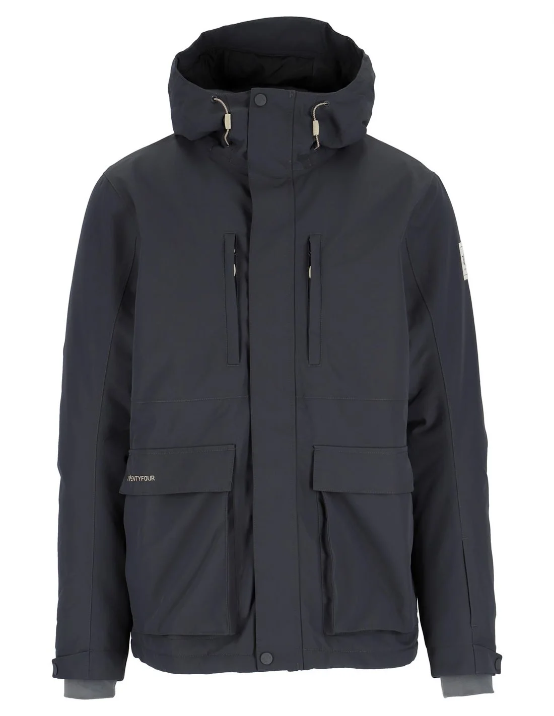 En superpraktisk vinterjakke i romslig fasong med justeringsmuligheter nederst og på ermene. Jakken er vattert og laget i vindtett, vanntett og pustende materiale med tapede sømmer. Den har utenpåliggende lommer med skjulte sidelommer samt to brystlommer med glidelås. Fast hette med 4-veis justering. Stormklaff med knappelukking over frontglidelås og ventilasjonsglidelås under armene. Innermansjett i myk fleece. Dette er en super jakke til både hverdag og vinteraktivitet.