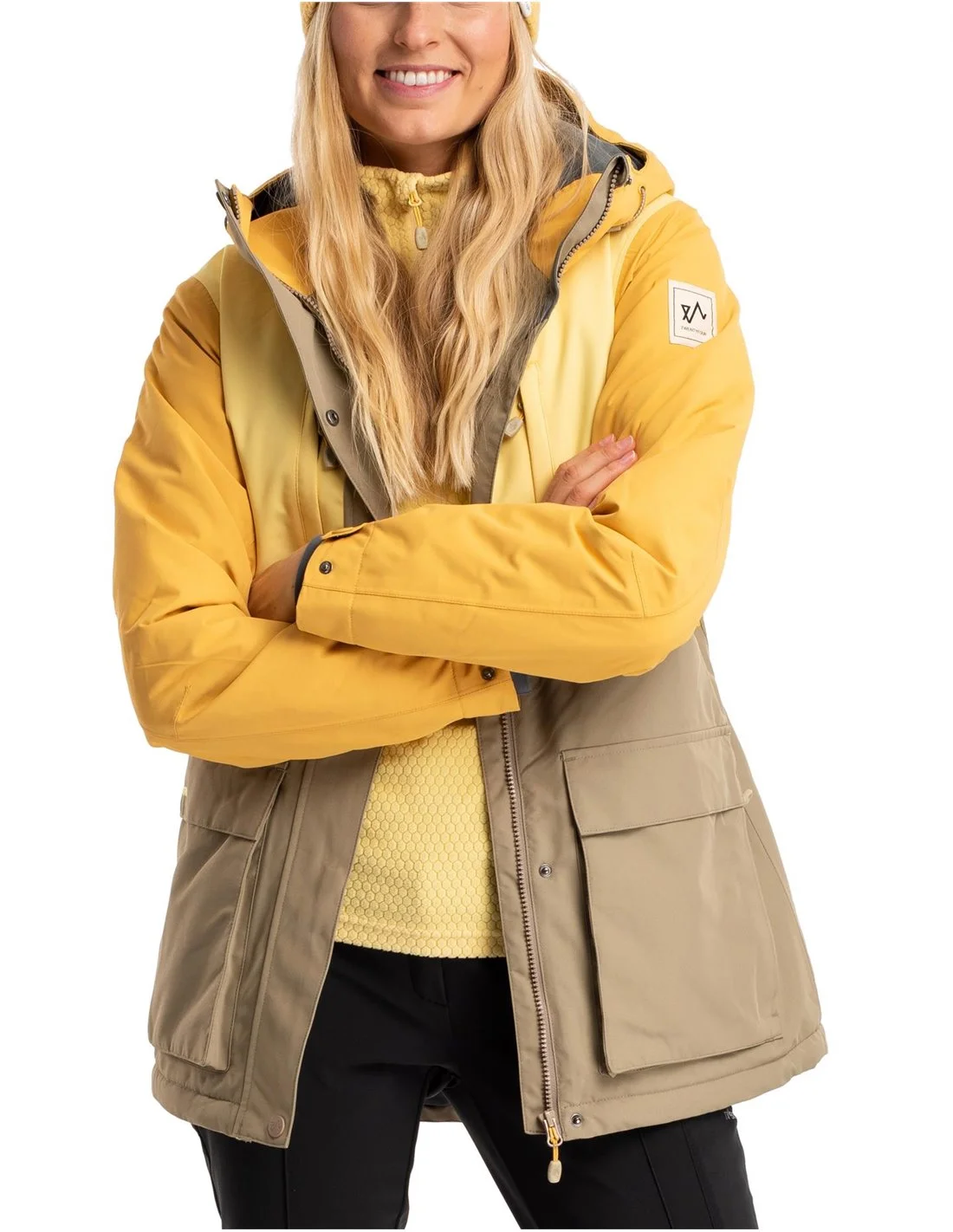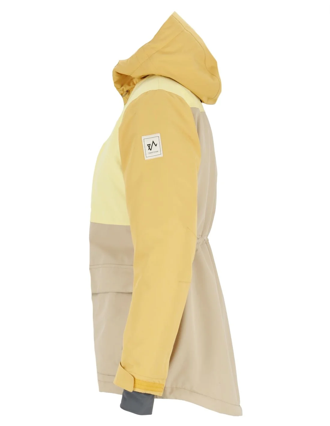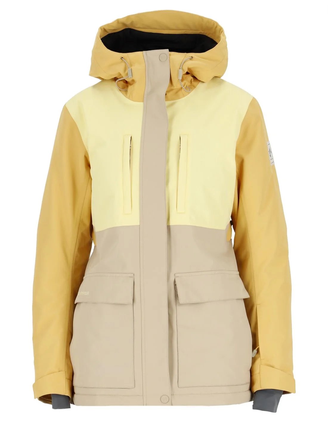 En superpraktisk vinterjakke i romslig fasong med justeringsmuligheter i midje, nederst og på ermene. Jakken er vattert og laget i vindtett, vanntett og pustende materiale med tapede sømmer. Den har utenpåliggende lommer med skjulte sidelommer samt to brystlommer med glidelås. Fast hette med 4-veis justering. Stormklaff med knappelukking over frontglidelås og ventilasjonsglidelås under armene. Innermansjett i myk fleece. Dette er en super jakke til både hverdag og vinteraktivitet.