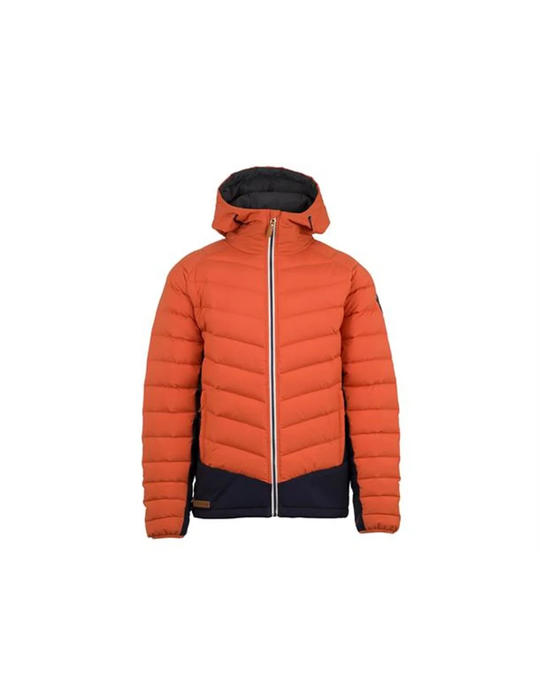 Superlett og myk dunjakke i matt stretchmateriale. Nedre panel og deler av armer i polyester vattering. Sidelommer med glidelås og justerbar hette.