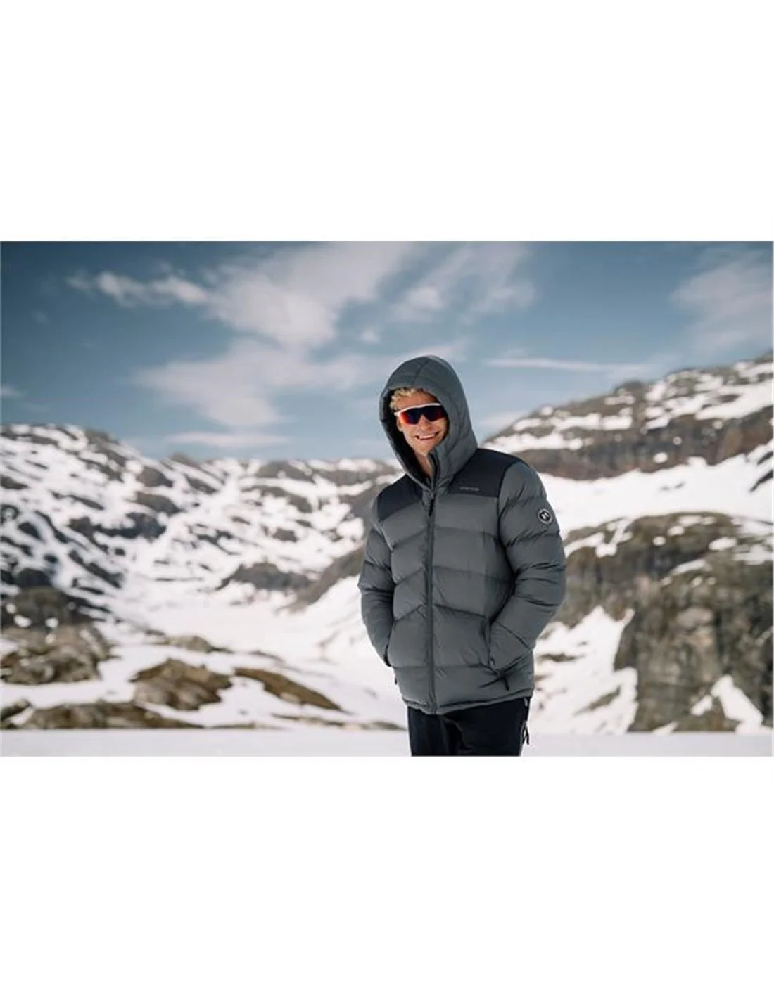 En lett og svært isolerende Ecodown jakke i lett vannavvisende materiale som holder deg god og varm gjennom hele vinteren. Den har sidelommer med glidelås under klaff, fast hette med justeringsmuligheter, innermansjetter og myk innerkrage.