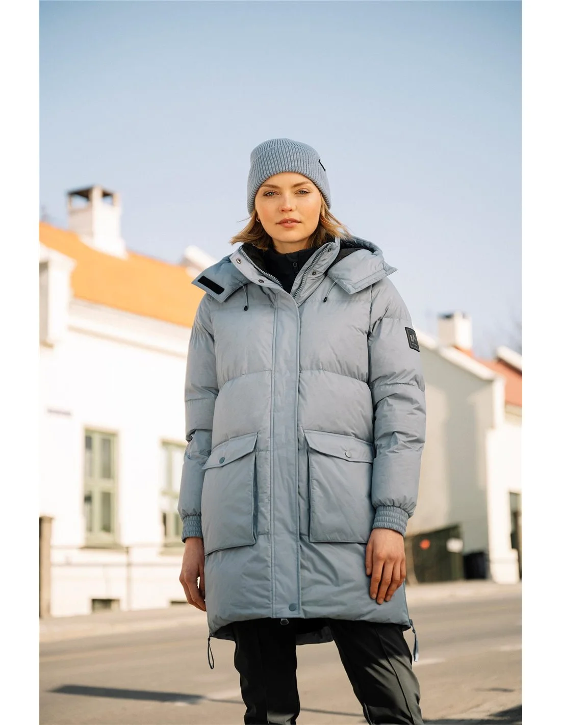 En lett og fyldig dunparkas i mykt nylon ribstop materiale med fast hette og deilig høy krage. Den er fylt med en blanding av 60% grå andedun mix og 40% løst polyester. Den har SBS glidelåser og stormklaff over front glidelås. En allsidig dunparkas med vannavvisende impregnering som isolerer godt. Jakken egner seg til både tur og fritid og lengden beskytter mot vær og vind.